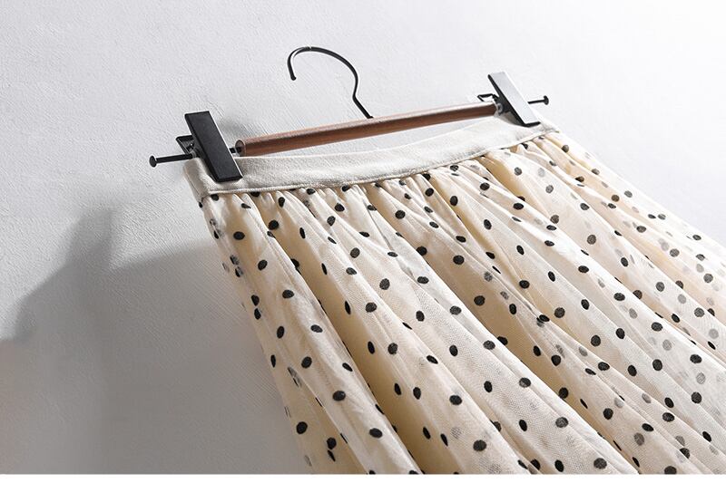 どんなコーデにも合わせやすいシンプルな色合いのドット柄のチュールスカートです。