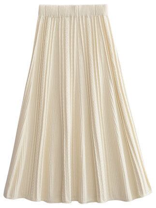 スカート ニットスカート ロングスカート ロング丈 冬 ウエストゴム ケーブルニット かわいい 大人可愛い きれいめ シンプル 大人 上品 おしゃれ お洒落 ラブリー キュート ガーリー 白 ホワイト 黒 ブラック 10代 20代 通勤 学生 通学 デート お出かけ 公園デビュー 女子会 ファッション コーデ スタイル モテ 送料無料 | Rena 韓国ファッション レディースアパレル