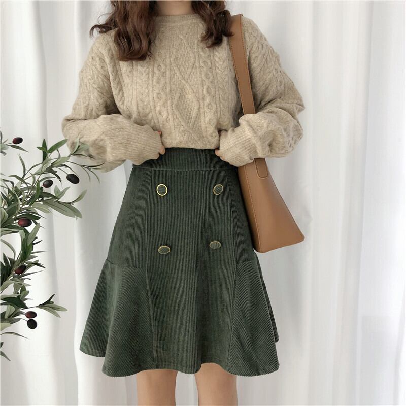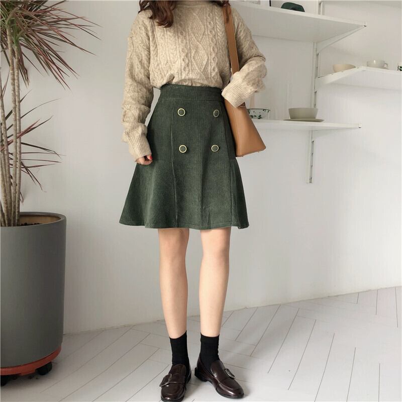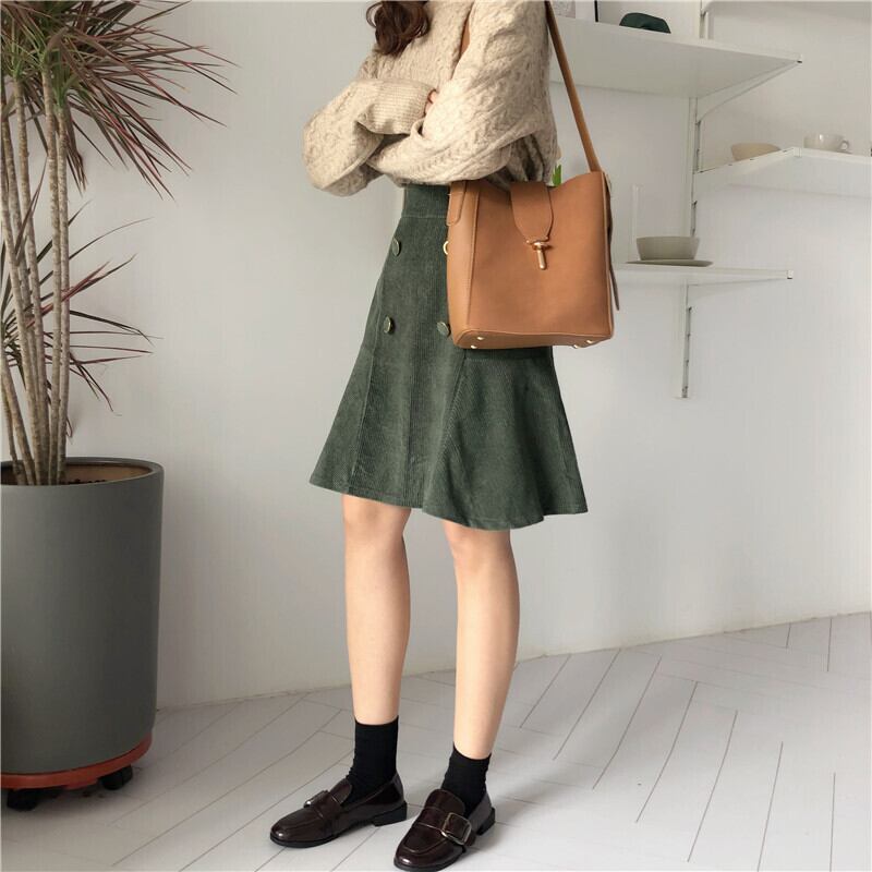 スカート タイトスカート Aラインスカート 膝上 無地 秋 冬 タイト Aライン ハイウエスト ボタン 大人可愛い きれいめ 大人 上品 おしゃれ お洒落 かっこいい 大人女子 こなれ感 主役級 厚手 コーデュロイ 黒 ブラック 緑 グリーン M L XL 2XL 3XL 4XL 大きいサイズ 10代 20代 30代 40代 OL 通勤 学生 通学 デート お出かけ 女子会 パーティー クリスマス バレンタイン 普段使い 韓国 オルチャン ファッション コーデ スタイル 美脚 脚長 定番 インスタ映え | Rena 韓国ファッション レディースアパレル