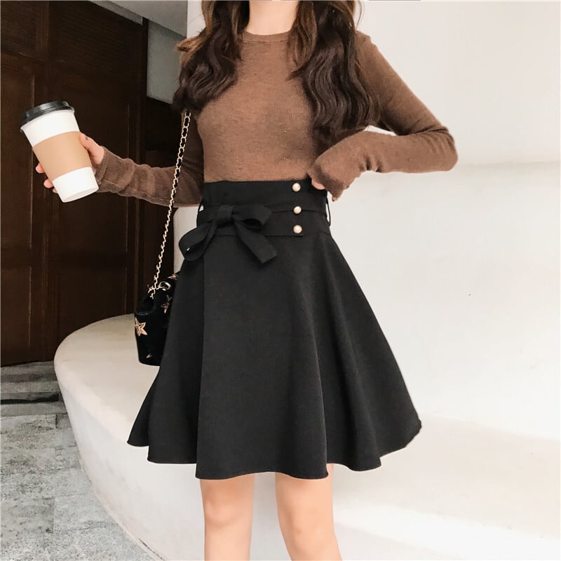 スカート フレアスカート Aラインスカート ショート丈 膝上 無地 秋 冬 フレア Aライン ウエストリボン ポケット ハイウエスト ボタン 大人可愛い 大人 上品 おしゃれ お洒落 大人女子 こなれ感 ガーリー 黒 ブラック 大人カラー M L XL 2XL 3XL 4XL 大きいサイズ 10代 20代 30代 OL 通勤 学生 通学 デート お出かけ 女子会 パーティー イベント クリスマス バレンタイン 韓国系 オルチャン ファッション コーデ スタイル モテ 美脚 脚長 定番 インスタ映え | Rena 韓国ファッション レディースアパレル