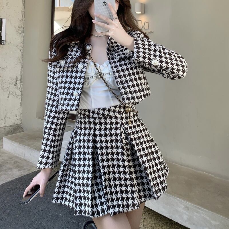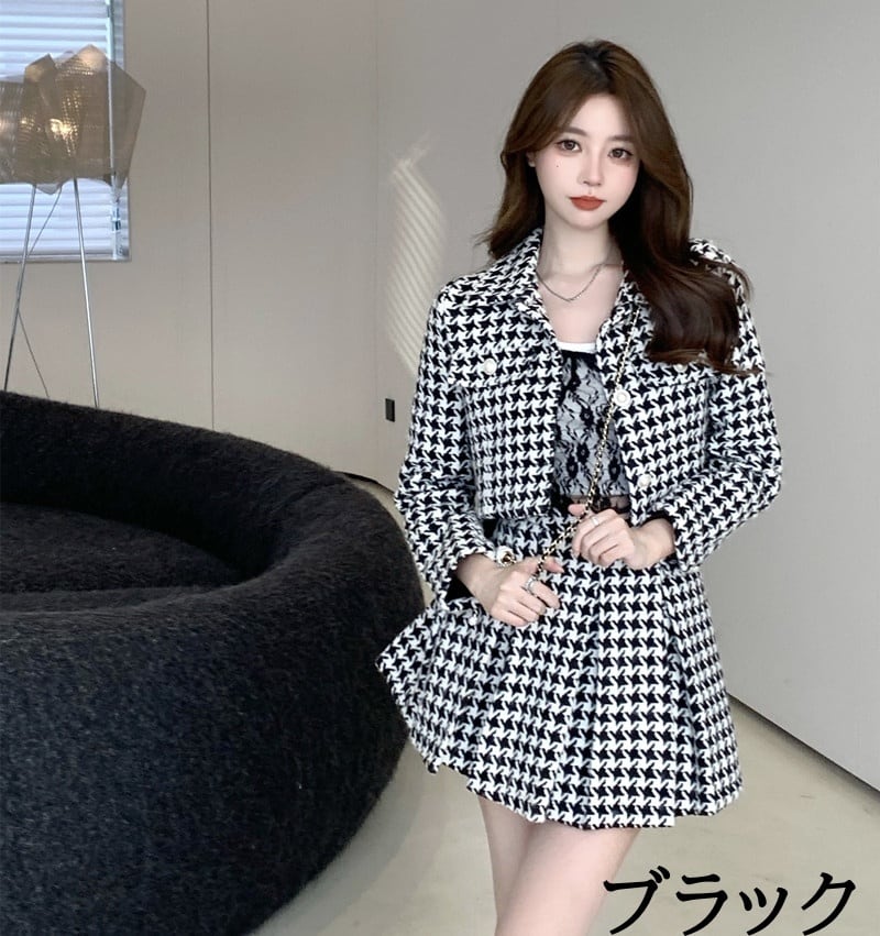 セットアップ ミニスカート ジャケット ミニ丈 長袖 柄 千鳥格子 秋 冬 フレア Aライン ボタン 大人可愛い きれいめ 大人 おしゃれ お洒落 大人女子 こなれ感 クール 主役級 抜け感 ショート 上下セット 2点セット ツーピース お得 黒 ブラック 茶色 ブラウン 大人カラー S M L XL 10代 20代 30代 40代 デート お出かけ パーティー イベント 旅行 結婚式 二次会 クリスマス バレンタイン 韓国 オルチャン ファッション コーデ スタイル モテ 美脚 脚長 インスタ映え | Rena 韓国ファッション レディースアパレル