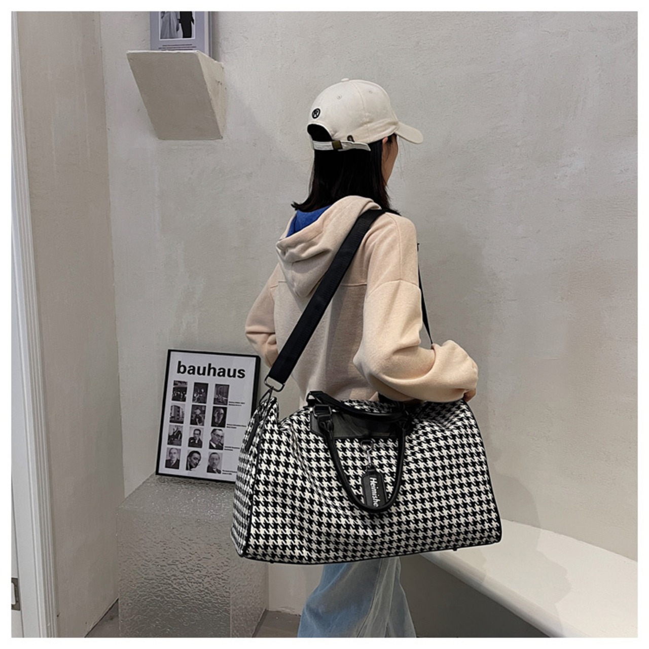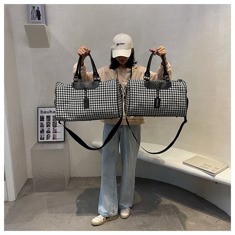 ファッショナブルな千鳥格子柄がスタイリッシュでオシャレなトラベルバッグです。
