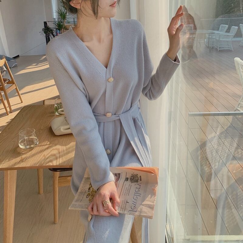 アウター レディース ニット カーディガン ロング丈 長袖 無地 春 秋 冬 ストレート ベルト かわいい 大人可愛い きれいめ シンプル カジュアル 大人 上品 おしゃれ お洒落 かっこいい 大人女子 こなれ感 ラフ クール セクシー エレガント Uネック 襟なし 青 ブルー 茶色 灰色 グレー ベージュ アプリコット S M L XL 10代 20代 30代 通勤 学生 通学 デート お出かけ 公園デビュー 女子会 お泊まり 普段使い ファッション コーデ スタイル モテ 送料無料 | Rena 韓国ファッション レディースアパレル