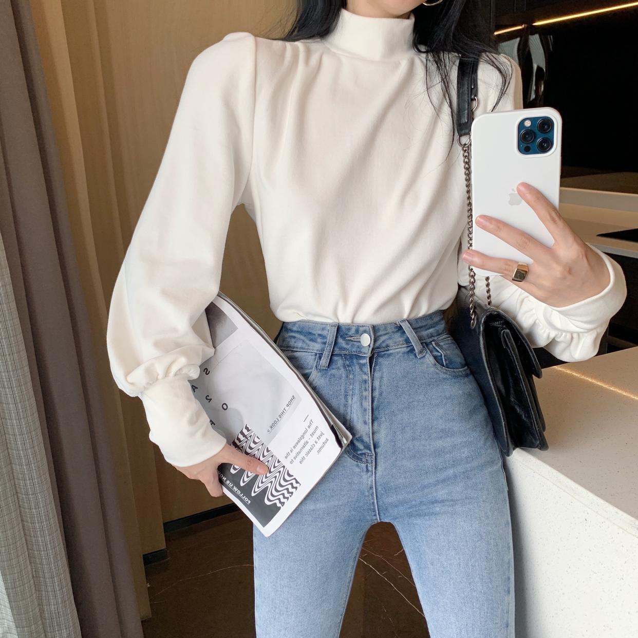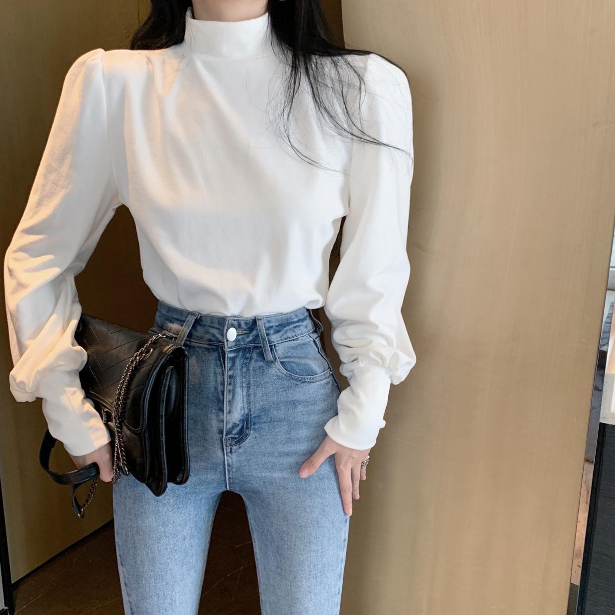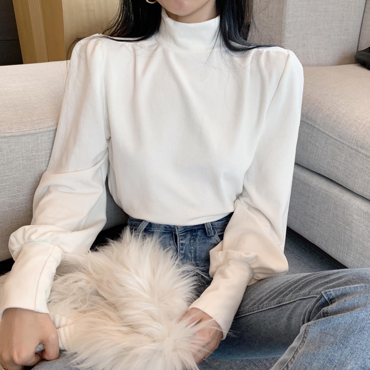 ブラウス カットソー 長袖 無地 春 秋 冬 ハイネック 白 ホワイト 黒 ブラック S M L 10代 20代 30代 OL 通勤 学生 通学 デート お出かけ 公園デビュー 女子会 お泊まり 普段使い 重ね着 お揃い ファッション コーデ スタイル モテ 送料無料 | Rena 韓国ファッション レディースアパレル