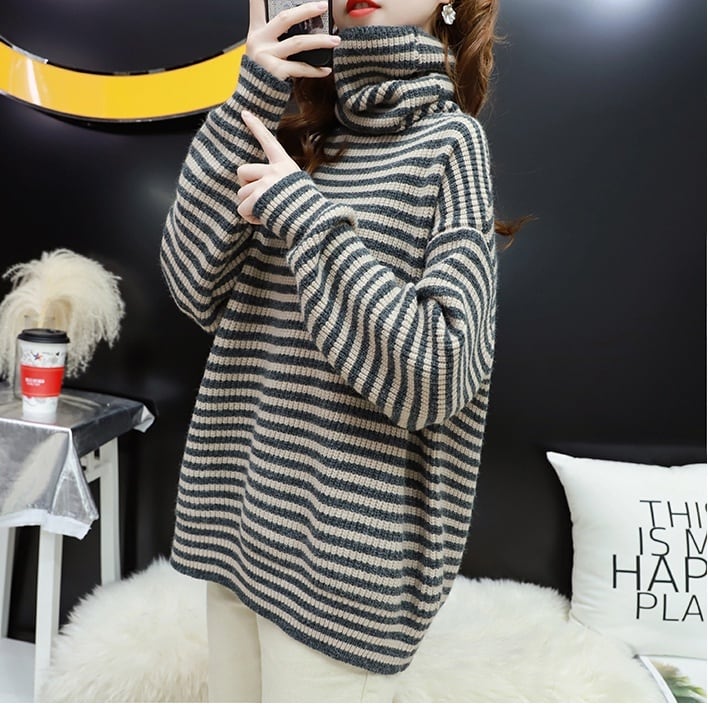 トップス ニット セーター 長袖 ボーダー 秋 冬 大人可愛い きれいめ シンプル カジュアル 大人 上品 おしゃれ お洒落 かっこいい レトロ 大人女子 こなれ感 ラフ 存在感 タートルネック ニット 黒 ブラック 茶色 ブラウン 灰色 グレー フリーサイズ 10代 20代 30代 40代 OL 通勤 学生 通学 デート お出かけ イベント ハロウィン クリスマス バレンタイン 着回し 普段使い 重ね着 お揃い 双子 韓国 韓国系 オルチャン ファッション コーデ モテ 定番 リモート 送料無料 | Rena 韓国ファッション レディースアパレル