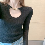 首元のチェーンがラグジュアリーで高見えも間違いなし。