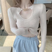 トップス ニット セーター 長袖 無地 秋 冬 スリム タイト 細身 ふわふわ かわいい 大人可愛い きれいめ シンプル カジュアル 大人 上品 おしゃれ お洒落 エキゾチック 大人女子 こなれ感 キュート ガーリー エレガント 主役級 抜け感 Uネック ショート 袖あり プルオーバー 黒 ブラック アプリコット S M L 10代 20代 30代 40代 OL 通勤 学生 通学 デート お出かけ イベント ハロウィン クリスマス バレンタイン オルチャン ファッション コーデ モテ 定番 | Rena 韓国ファッション レディースアパレル