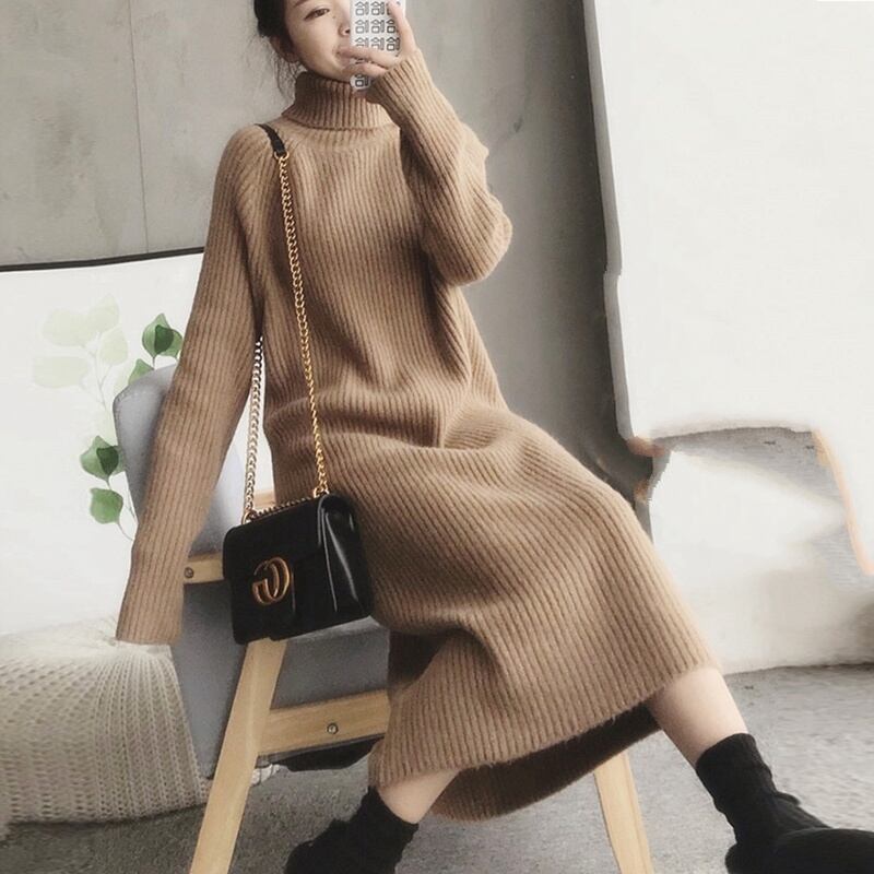 ワンピース タイトワンピース ニットワンピース 七分丈 長袖 無地 秋 冬 スリム タイト 細身 Iライン ウエストマーク 大人可愛い きれいめ シンプル カジュアル 大人 大人女子 こなれ感 ラフ 主役級 存在感 ハイネック 袖あり 黒 ブラック 灰色 グレー ベージュ 大人カラー 秋カラー キャメル S M L XL 10代 20代 30代 40代 女性用 イベント 着回し 普段使い 重ね着 お揃い 双子 韓国 韓国系 オルチャン ファッション コーデ スタイル 楽ちん あったか 暖かい モテ | Rena 韓国ファッション レディースアパレル