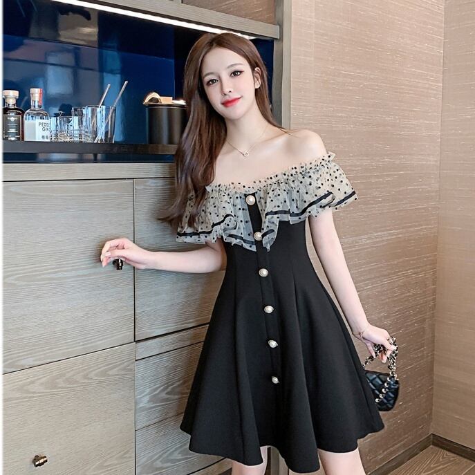 ワンピース フレアワンピース ショート丈 無地 ドット 夏 フレア スリム タイト 細身 切り替えデザイン チュール シフォン フリル ウエストマーク 切り替えデザイン ハイウエスト シースルー ボタン きれいめ 大人 上品 エキゾ大人女子セクシー エレガント 主役級 存在感 オフショルダー オフショル ショート 袖なし プルオーバー 綿 黒 ブラック S M L XL 10代 20代 30代 女性用 パーティー イベント 結婚式 二次会 披露宴 韓国系 オルチャン ファッション モテ 美脚 脚長 | Rena 韓国ファッション レディースアパレル