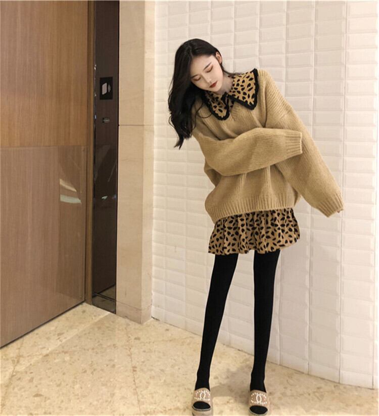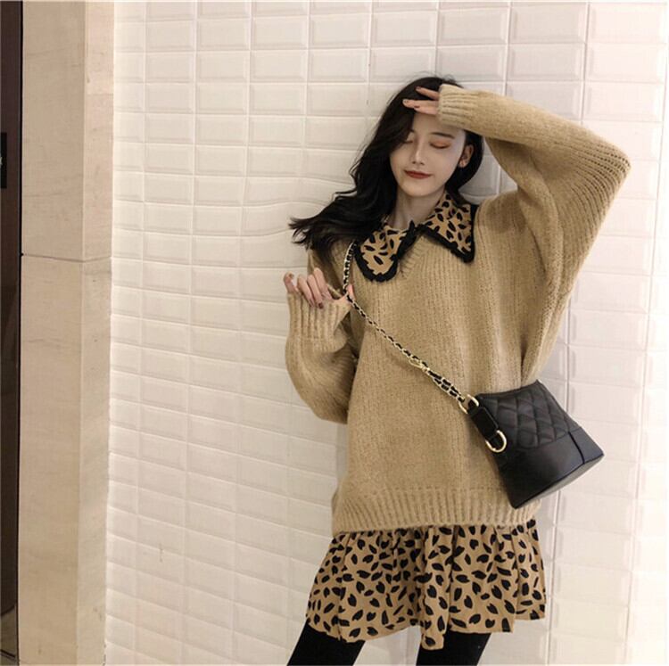 ワンピース ニット 長袖 ヒョウ柄 秋 冬 もこもこ モコモコ かわいい 大人可愛い カジュアル おしゃれ お洒落 かっこいい 大人可愛い 大人女子 ラブリー キュート 袖あり S M L XL 10代 20代 30代 デート お出かけ 女子会 休日 旅行 ファッション コーデ スタイル 送料無料 | Rena 韓国ファッション レディースアパレル