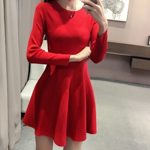ワンピース ミニ丈 ショート丈 長袖 無地 春 秋 冬 かわいい 大人可愛い きれいめ シンプル 大人 上品 おしゃれ お洒落 大人可愛い 大人女子 こなれ感 メンズライク ラブリー キュート クール セクシー エレガント 主役級 存在感 ラウンドネック ミニ 袖あり 黒 ブラック 赤 レッド S M L XL 10代 20代 30代 デート お出かけ 女子会 休日 パーティー イベント リゾート ファッション コーデ スタイル 送料無料 | Rena 韓国ファッション レディースアパレル