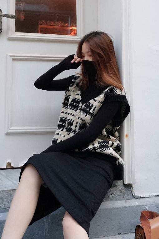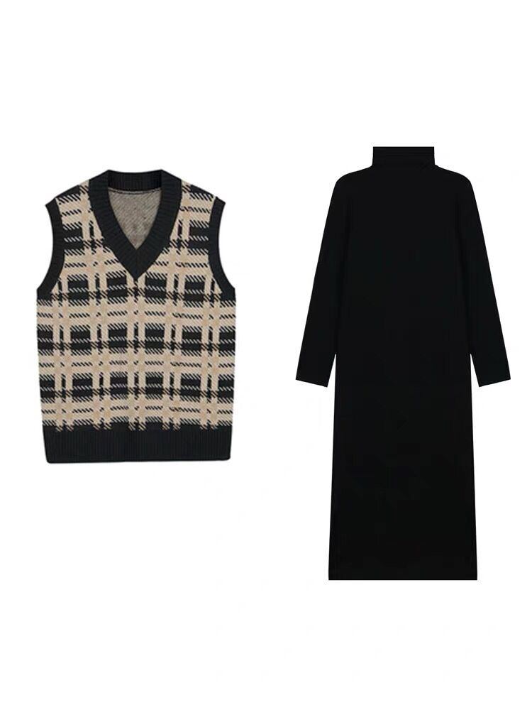 セットアップ ベスト ニットワンピース ロング丈 無地 チェック 秋 冬 かわいい 大人可愛い きれいめ シンプル 大人 上品 おしゃれ お洒落 かっこいい 大人女子 個性的 エレガント ハイネック 2点セット ツーピース 黒 ブラック S M L XL 10代 20代 30代 40代 OL 通勤 学生 通学 デート お出かけ 公園デビュー 女子会 重ね着 ファッション コーデ スタイル 楽ちん あったか モテ 送料無料 | Rena 韓国ファッション レディースアパレル