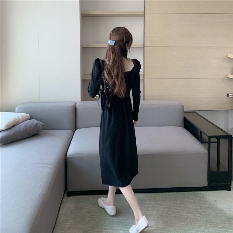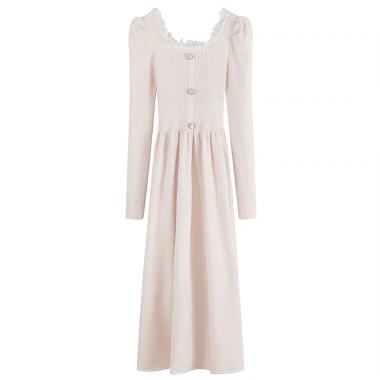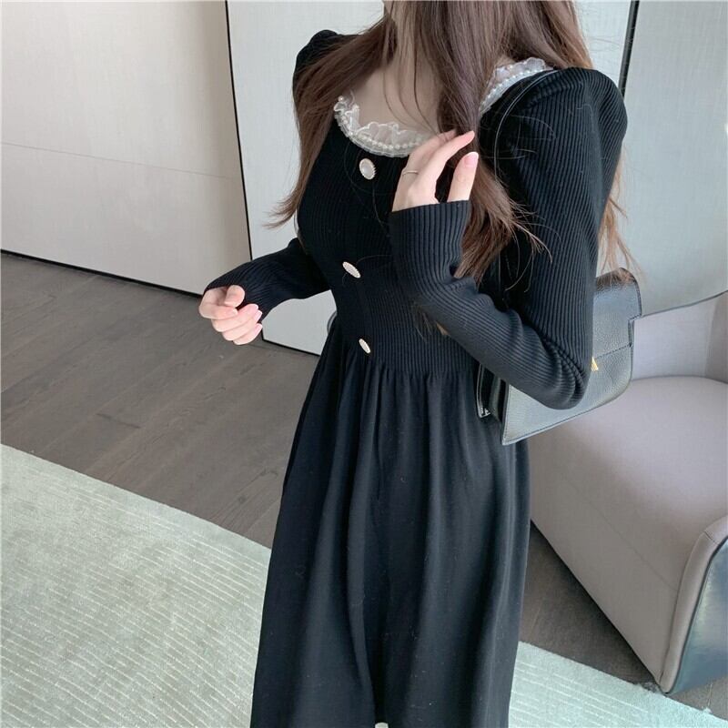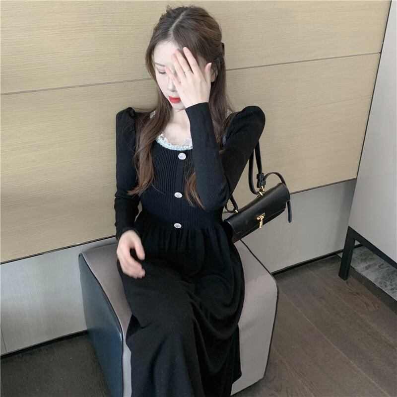 ワンピース ニットワンピース ミドル丈 長袖 無地 秋 冬 タイト 細身 レース フリル ボタン かわいい 大人可愛い シンプル 大人 上品 おしゃれ お洒落 大人女子 こなれ感 ラブリー キュート ガーリー 抜け感 袖あり ナイロン 白 ホワイト 黒 ブラック フリーサイズ 10代 20代 30代 40代 オフィス ビジネス OL 通勤 学生 通学 デート お出かけ イベント ハロウィン クリスマス バレンタイン 普段使い オルチャン ファッション コーデ スタイル モテ インスタ映え | Rena 韓国ファッション レディースアパレル