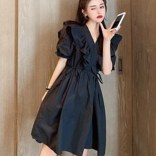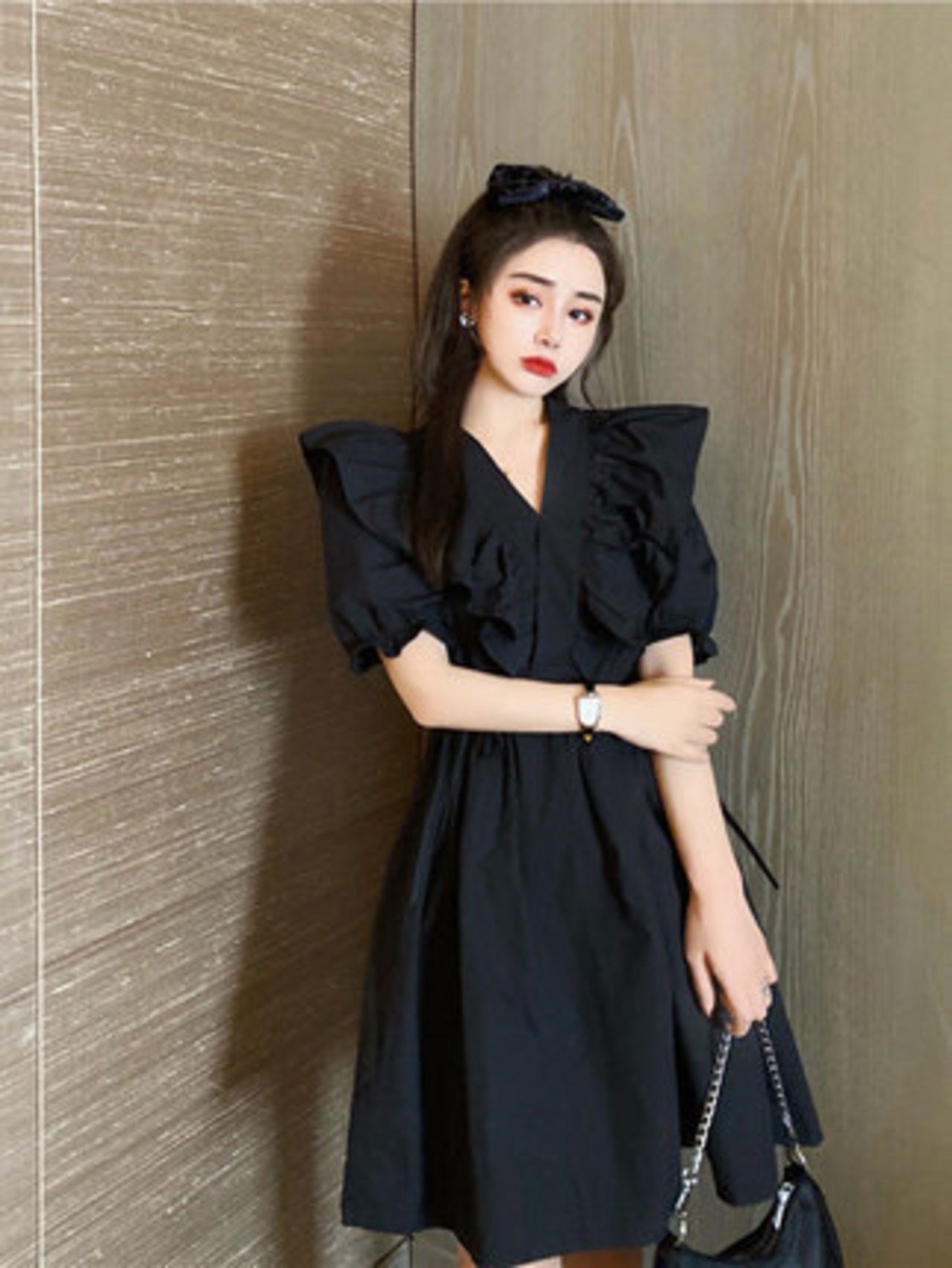 ワンピース フレアワンピース 膝丈 半袖 無地 春 夏 フレア ワイド ギャザー ビック襟 プリーツ かわいい 大人可愛い おしゃれ ラブリー キュート 存在感 パフスリーブ 白 ホワイト 黒 ブラック S M L XL 10代 20代 30代 女性用 OL 学生 デート お出かけ 女子会 パーティー イベント 旅行 韓国 オルチャン ファッション コーデ スタイル モテ 体系カバー プレゼント ギフト 流行 インスタ映え ゆったり | Rena 韓国ファッション レディースアパレル