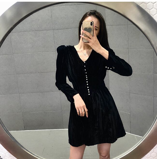 シックなブラックカラーに、高級感のあるベルベット生地がオススメのドレスです。