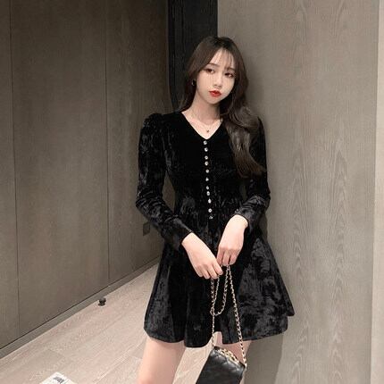 ワンピース レディース Aラインワンピース ミニ丈 ショート丈 長袖 無地 春 秋 冬 フレア Aライン 裾フレア かわいい 大人可愛い きれいめ シンプル カジュアル 大人 上品 おしゃれ お洒落 レトロ 大人女子 エレガント モダン とろみ感 Vネック ショート 袖あり 黒 ブラック 大人カラー ベイクドカラー S M L XL 20代 30代 学生 通学 デート お出かけ お泊まり パーティー イベント 着回し 普段使い 韓国系 オルチャン コーデ スタイル モテ トレンド 流行 インスタ映え | Rena 韓国ファッション レディースアパレル