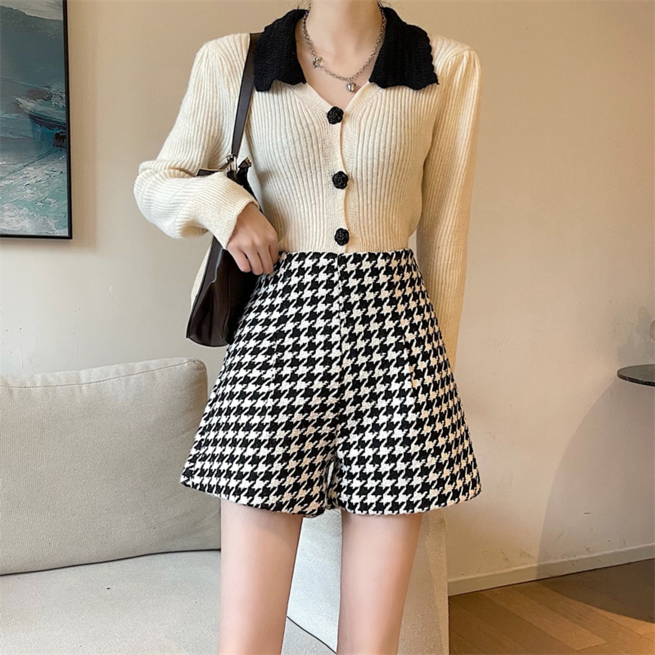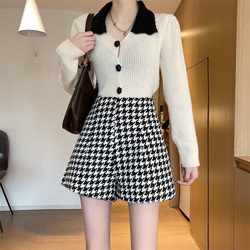 パンツ レディース ショートパンツ ミニ丈 ショート丈 柄 千鳥格子 秋 冬 スリム ストレート かわいい 大人可愛い きれいめ シンプル カジュアル 大人 上品 おしゃれ お洒落 レトロ 大人女子 こなれ感 個性的 ショート ブラック 茶色 ブラウン くすみカラー 大人カラー S M L XL 2XL 20代 30代 女性用 ビジネス 通勤 学生 通学 お出かけ 女子会 休日 着回し 普段使い 韓国系 オルチャン ファッション コーデ スタイル モテ 送料無料 トレンド 流行 インスタ映え | Rena 韓国ファッション レディースアパレル
