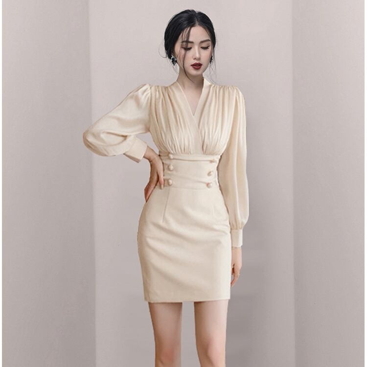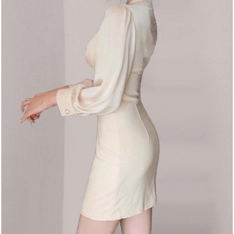 ワンピース レディース コクーンワンピース ミニ丈 長袖 無地 春 秋 冬 スリム タイト 細身 ストレート かわいい 大人可愛い きれいめ シンプル カジュアル 大人 上品 おしゃれ お洒落 かっこいい 大人女子 個性的 モード系 セクシー エレガント Vネック ショート 袖あり くすみカラー 光沢 S M L XL 20代 30代 女の子 デート お出かけ 公園デビュー 女子会 休日 着回し 韓国 韓国系 オルチャン ファッション コーデ スタイル モテ 送料無料 トレンド 流行 | Rena 韓国ファッション レディースアパレル