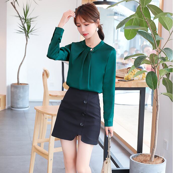 シャツ ブラウス 長袖 無地 春 秋 シフォン 大人可愛い きれいめ シンプル 大人 上品 おしゃれ お洒落 大人女子 こなれ感 エレガント Uネック 襟なし 緑 グリーン ベージュ ピンク ネイビー 紺 S M L XL 2XL 10代 20代 30代 オフィス ビジネス OL 通勤 学生 通学 デート お出かけ 女子会 ファッション コーデ スタイル モテ 送料無料