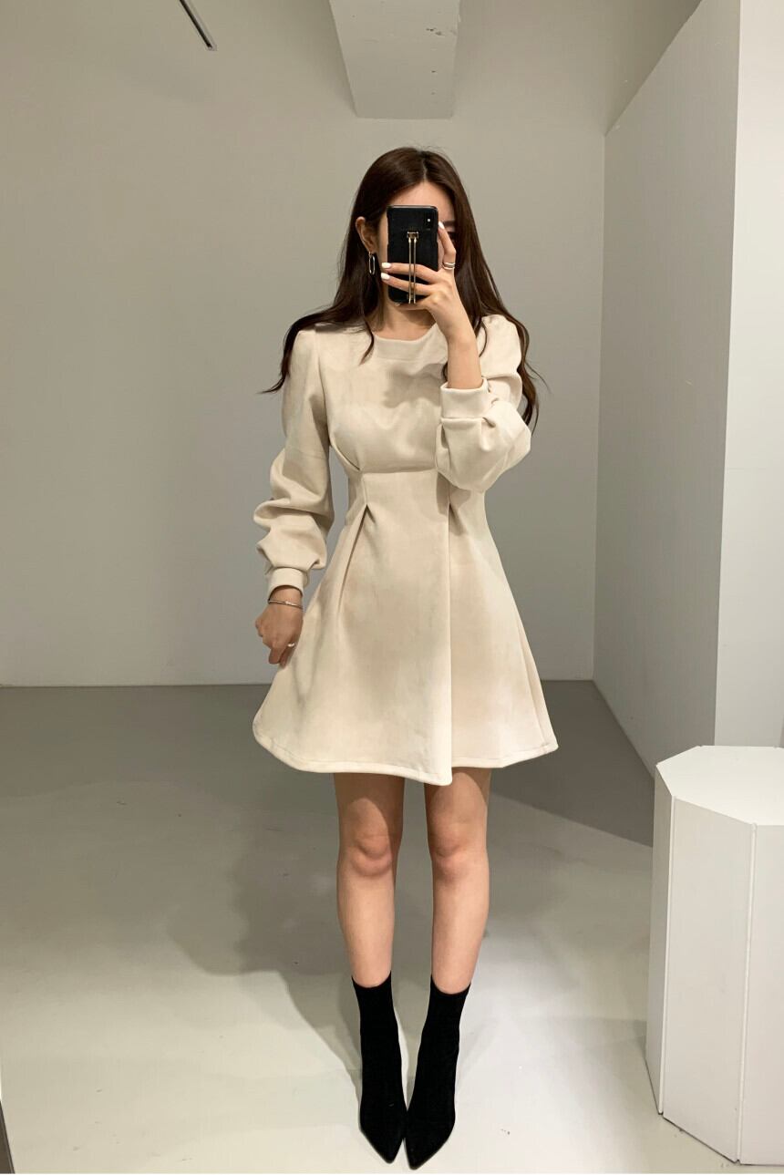 ワンピース フレアスカート フレアワンピース 七分袖 無地 春 秋 フレア かわいい 大人可愛い きれいめ 大人 上品 おしゃれ お洒落 大人女子 ラブリー キュート ガーリー セクシー エレガント Uネック パフスリーブ 白 ホワイト ベージュ 10代 20代 OL 通勤 学生 通学 デート お出かけ 女子会 ファッション コーデ スタイル モテ 送料無料 | Rena 韓国ファッション レディースアパレル