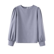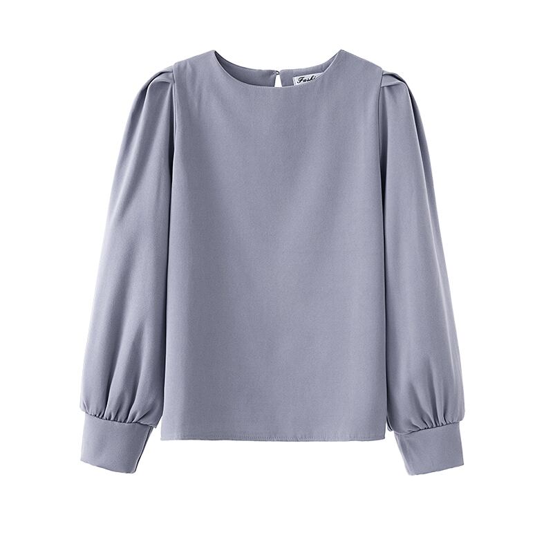 ブラウス カットソー 長袖 無地 春 秋 大人可愛い きれいめ シンプル 大人 上品 おしゃれ お洒落 かっこいい レトロ ラブリー キュート ガーリー ラウンドネック パフスリーブ 白 青 ブルー オフホワイト S M L 10代 20代 30代 オフィス ビジネス OL 通勤 学生 通学 デート 着回し ファッション コーデ スタイル モテ 送料無料 | Rena 韓国ファッション レディースアパレル
