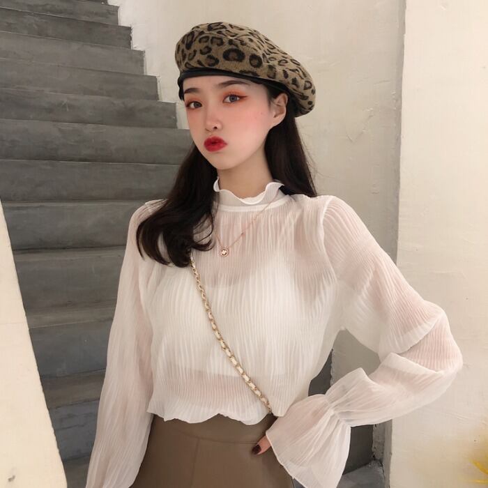 ブラウス カットソー 長袖 無地 春 秋 フレア かわいい 大人可愛い きれいめ シンプル カジュアル 大人 上品 おしゃれ お洒落 大人女子 ラブリー キュート ガーリー ハイネック ホルンスリーブ 白 ホワイト 黒 ブラック 10代 20代 OL 通勤 学生 通学 デート お出かけ 女子会 ファッション コーデ スタイル モテ 送料無料 | Rena 韓国ファッション レディースアパレル