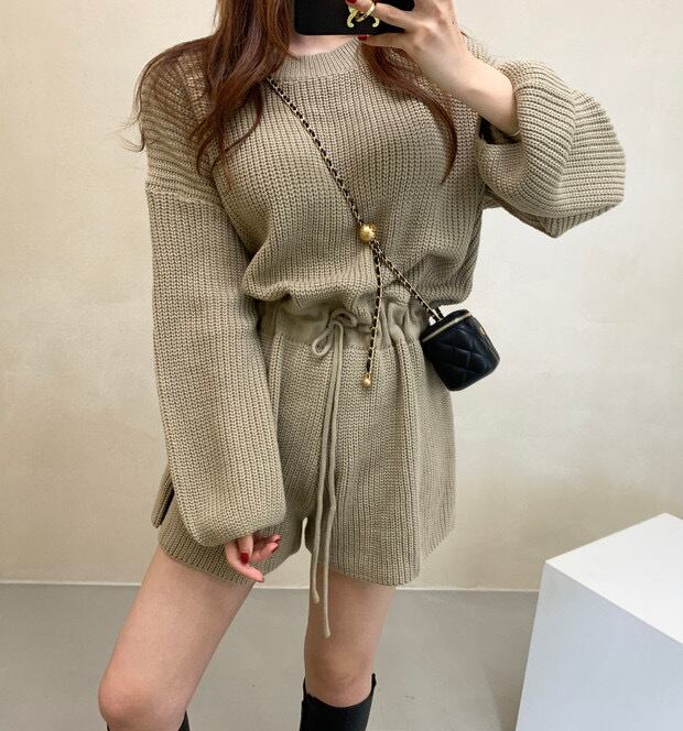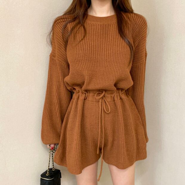 セットアップ ニット オールインワン ミニ丈 長袖 無地 春 秋 かわいい 大人可愛い きれいめ シンプル カジュアル 大人 上品 おしゃれ お洒落 大人女子 メンズライク マニッシュ ラブリー キュート ガーリー セクシー エレガント Uネック 黒 ブラック 緑 グリーン ベージュ オレンジ 10代 20代 通勤 学生 通学 デート お出かけ 女子会 ファッション コーデ スタイル モテ 送料無料 | Rena 韓国ファッション レディースアパレル