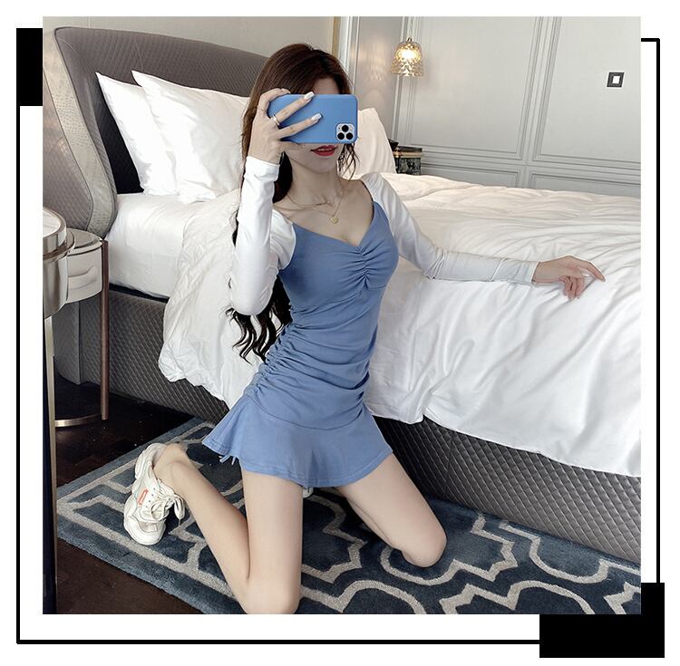 ワンピース レディース フレアワンピース ミニ丈 ショート丈 長袖 無地 春 スリム 細身 Aライン かわいい 大人可愛い きれいめ シンプル カジュアル 大人 上品 おしゃれ お洒落 レトロ 大人可愛い 大人女子 キュート ガーリー 個性的 セクシー Vネック ショート 袖あり 黒 ブラック 青 ブルー S M L XL 20代 30代 デート お出かけ 女子会 休日 イベント リゾート 着回し 普段使い 韓国 韓国系 オルチャン コーデ スタイル モテ 送料無料 トレンド 流行 インスタ映え | Rena 韓国ファッション レディースアパレル