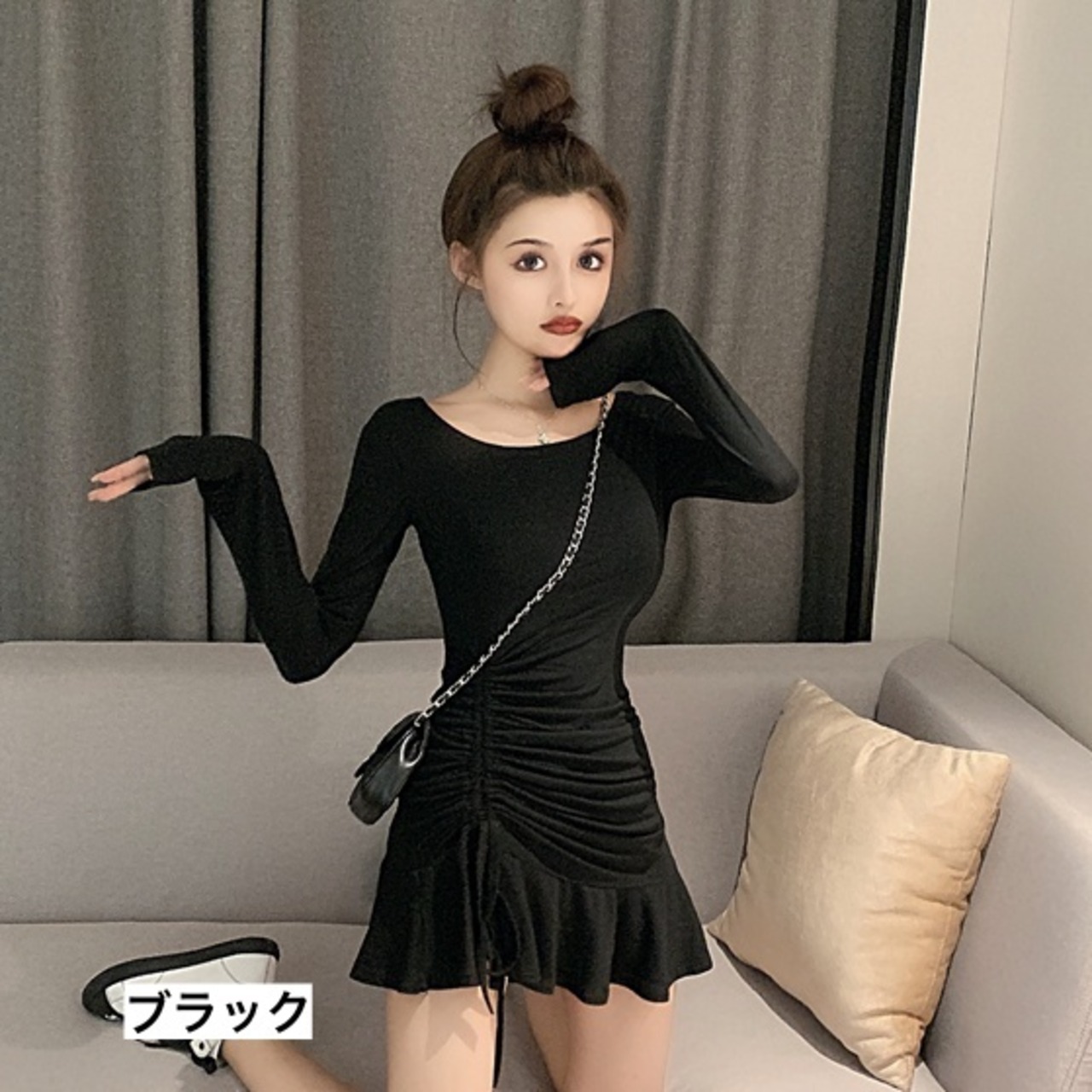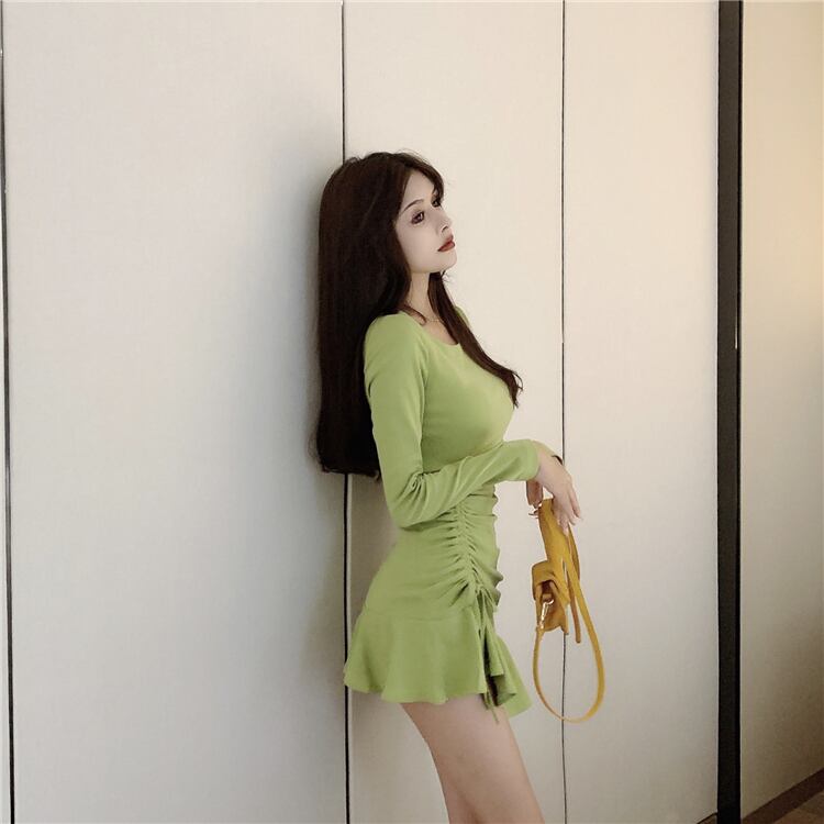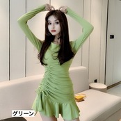 ワンピース レディース フレアワンピース ミニ丈 ショート丈 長袖 無地 春 裾フレア フリル かわいい 大人可愛い きれいめ シンプル カジュアル 大人 上品 おしゃれ お洒落 大人可愛い 大人女子 キュート ガーリー とろみ感 Uネック ショート 袖あり 黒 ブラック 緑 グリーン 灰色 グレー くすみカラー S M L 20代 30代 デート お出かけ 女子会 休日 着回し 普段使い 韓国 韓国系 ファッション コーデ スタイル 楽ちん プチプラ 送料無料 トレンド 流行 インスタ映え | Rena 韓国ファッション レディースアパレル