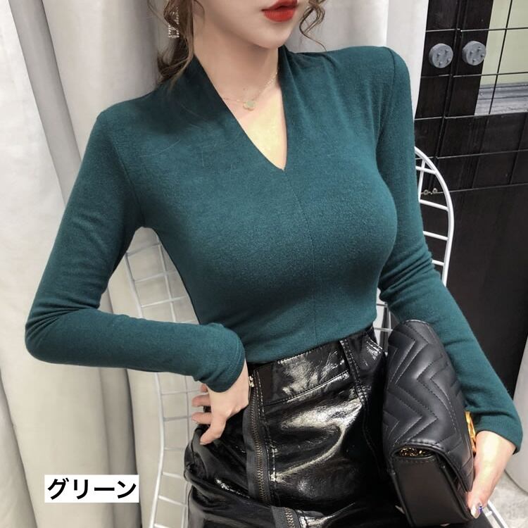 トップス レディース カットソー 長袖 無地 春 秋 かわいい 大人可愛い きれいめ シンプル カジュアル 大人 上品 おしゃれ お洒落 レトロ エキゾチック 大人女子 こなれ感 エレガント モダン Vネック 袖あり 黒 ブラック 緑 グリーン 茶色 ブラウン S M L XL 2XL 20代 30代 オフィス ビジネス OL 通勤 学生 通学 デート お出かけ 女子会 着回し 普段使い 韓国 韓国系 オルチャン ファッション コーデ スタイル モテ 送料無料 トレンド 流行 インスタ映え | Rena 韓国ファッション レディースアパレル