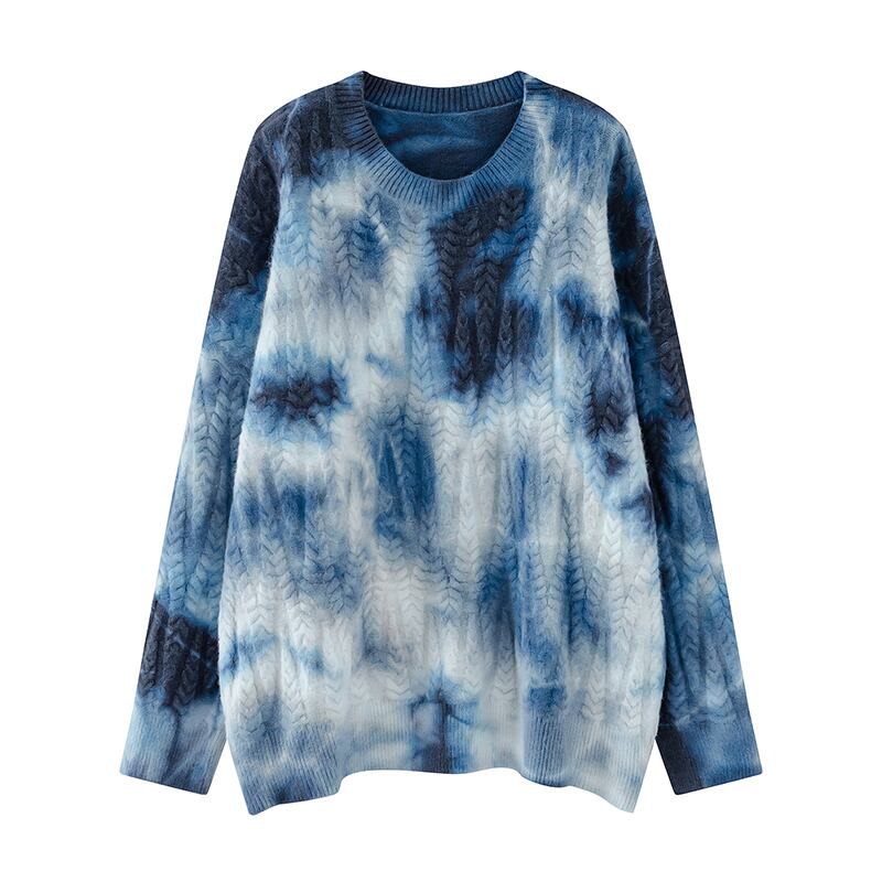 ファッショナブルな絞り染め模様のグラデーションカラーが印象的な長袖セーターです。