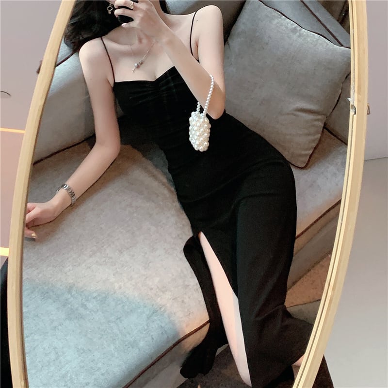 ワンピース キャミソールワンピース タイトワンピース ロング丈 無地 春 夏 秋 冬 フレア Aライン スリット サイドスリット シンプル 大人 上品 おしゃれ 大人女子 セクシー エレガント 主役級 ロング 袖なし ワンピドレス 黒 ブラック 紫 パープル ピンク 水色 S M L XL 大きいサイズ 10代 20代 30代 40代 50代 パーティー イベント 謝恩会 二次会 体系カバー 美脚 脚長 定番 プチプラ 送料無料 | Rena 韓国ファッション レディースアパレル