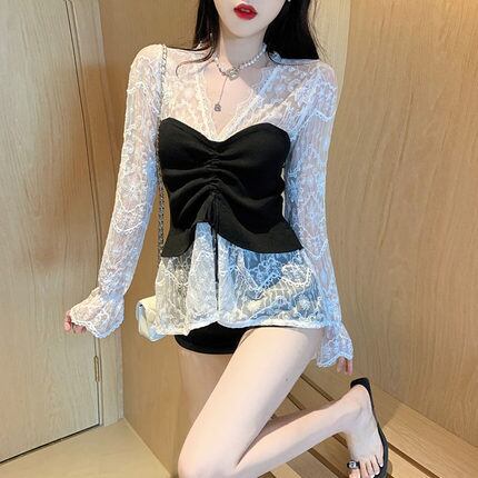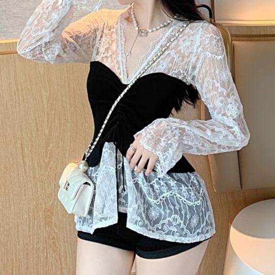 セクシーでラグジュアリーな雰囲気のレース素材が特徴のトップスです。