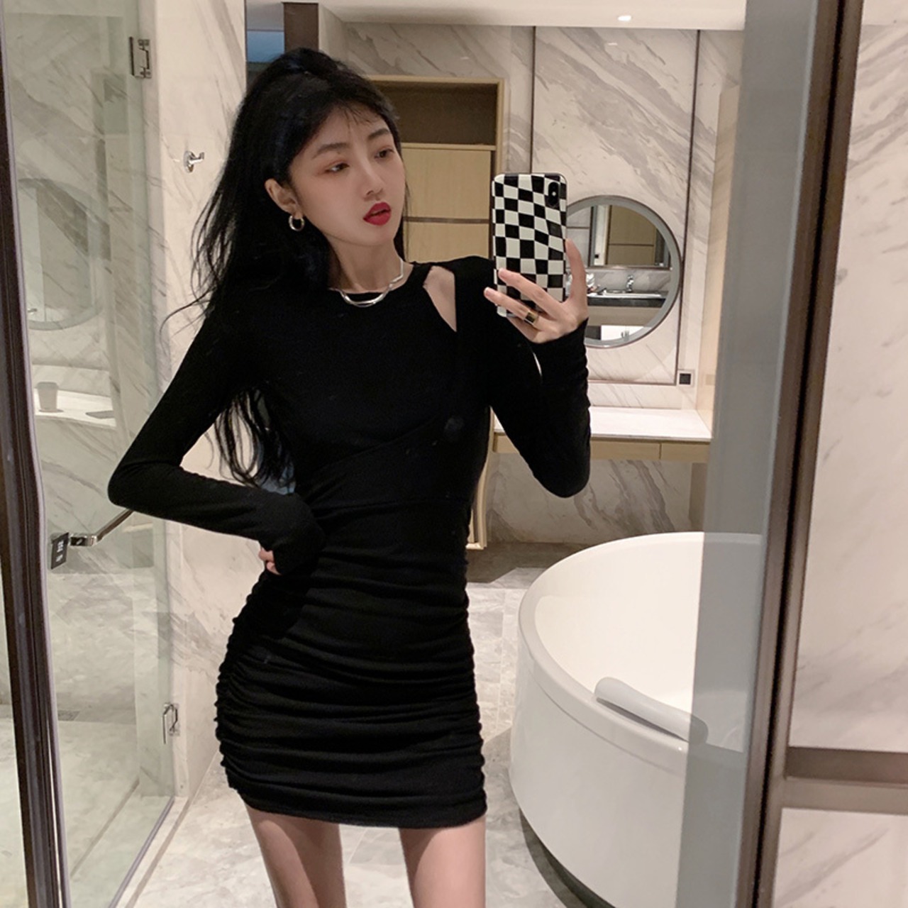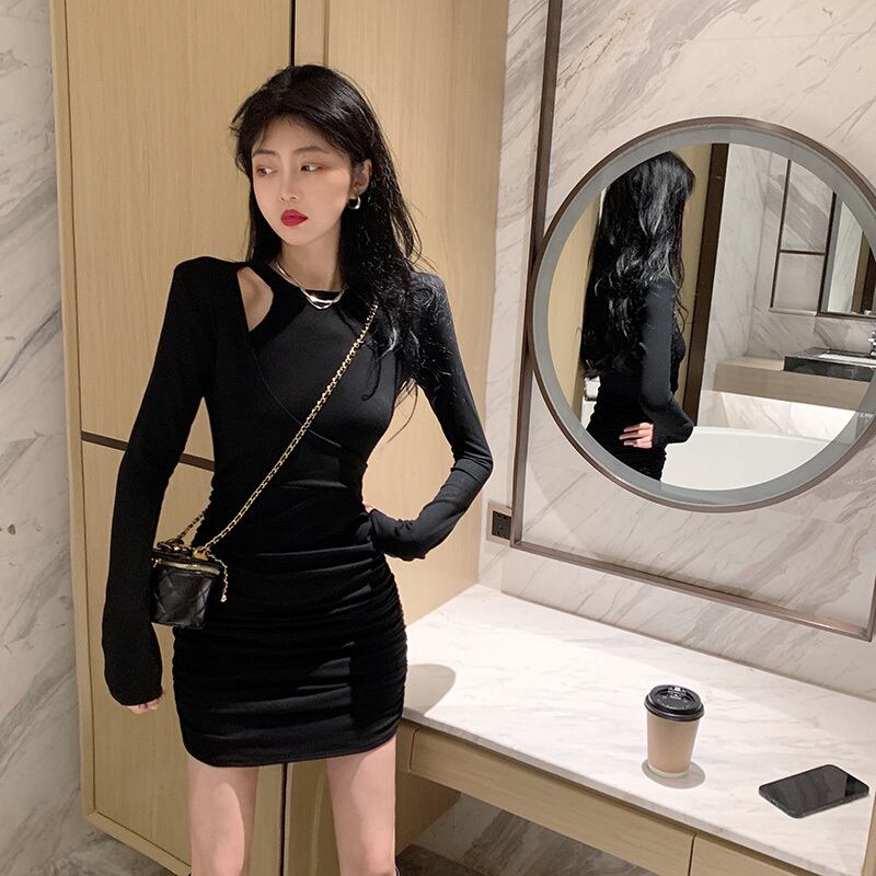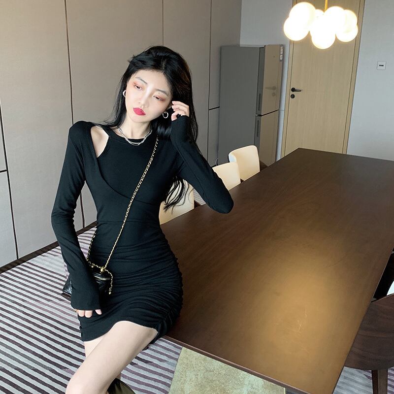 ワンピース タイトワンピース ミニ丈 長袖 無地 春 秋 冬 スリム タイト 細身 かわいい シンプル 大人 おしゃれ かっこいい 大人女子 クール セクシー エレガント 主役級 ミニ 黒 ブラック モノトーン S M L 10代 20代 30代 40代 学生 通学 デート お出かけ パーティー イベント 旅行 韓国系 ファッション コーデ スタイル 美脚 脚長 プチプラ 送料無料 インスタ映え | Rena 韓国ファッション レディースアパレル