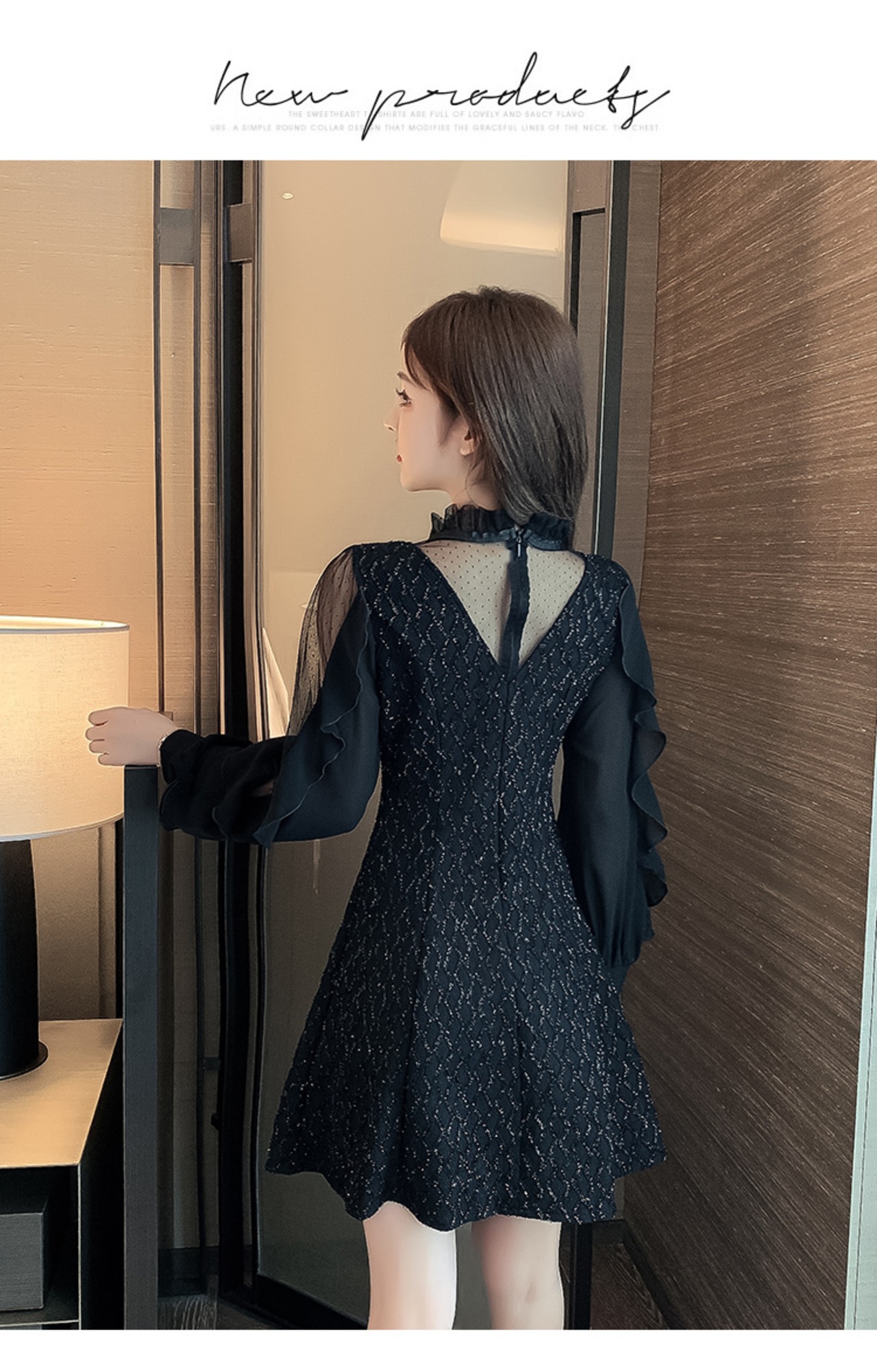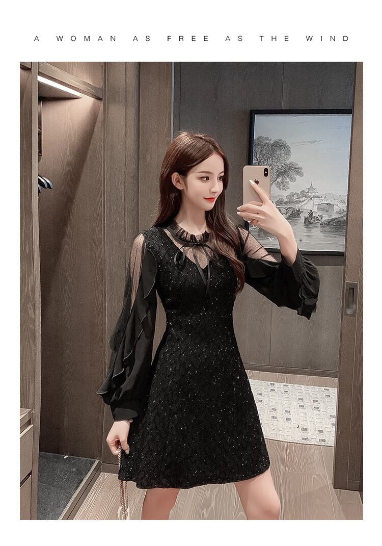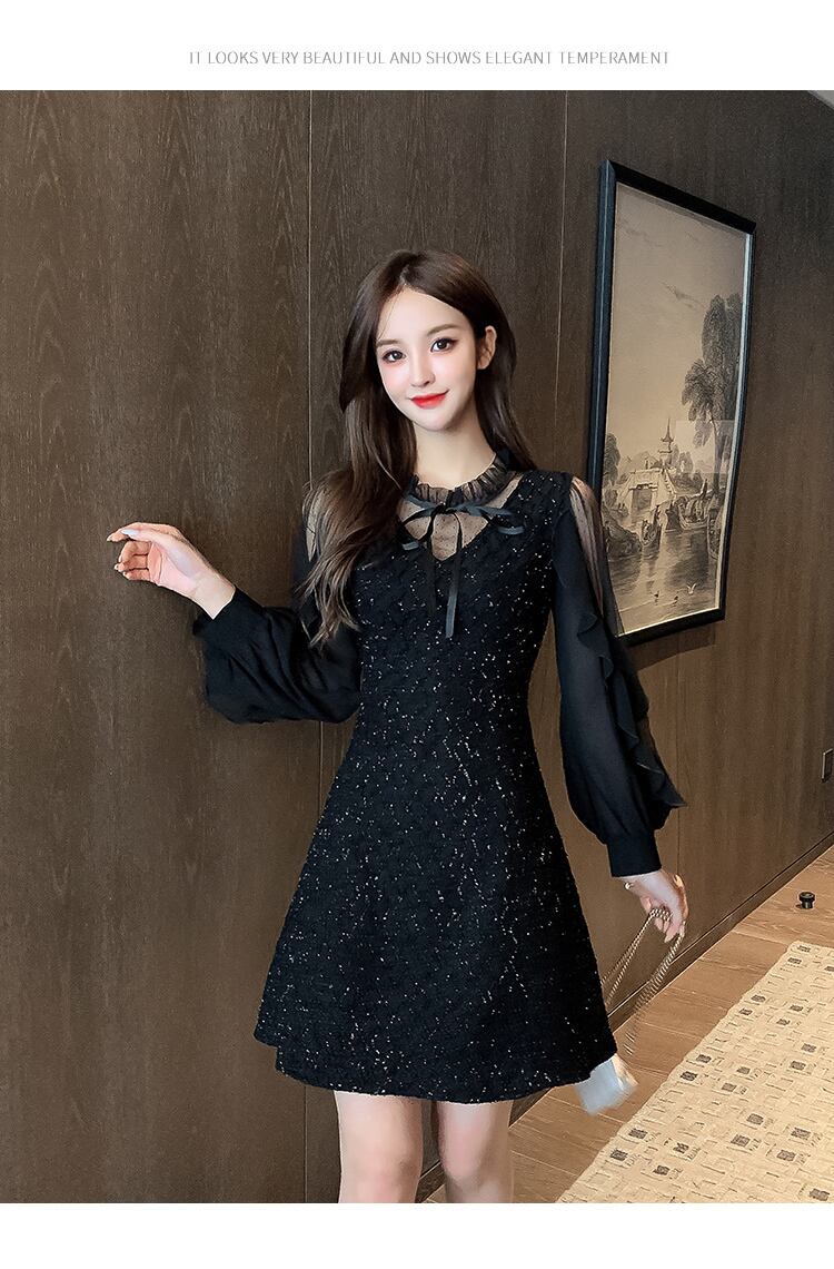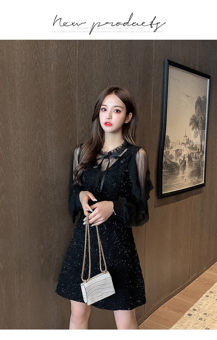 ワンピース Aラインワンピース ミニ丈 長袖 春 夏 秋 スリム 細身 Aライン 裾フレア シフォン リボン 透け感 シースルー かわいい 大人可愛い おしゃれ 大人女子 ラブリー キュート ガーリー エレガント ミニ 黒 ブラック ワインレッド S M L XL 2XL 3XL 4XL 大きいサイズ 10代 20代 30代 40代 通学 デート お出かけ 女子会 パーティー イベント 韓国系 美脚 脚長 プチプラ 送料無料 | Rena 韓国ファッション レディースアパレル
