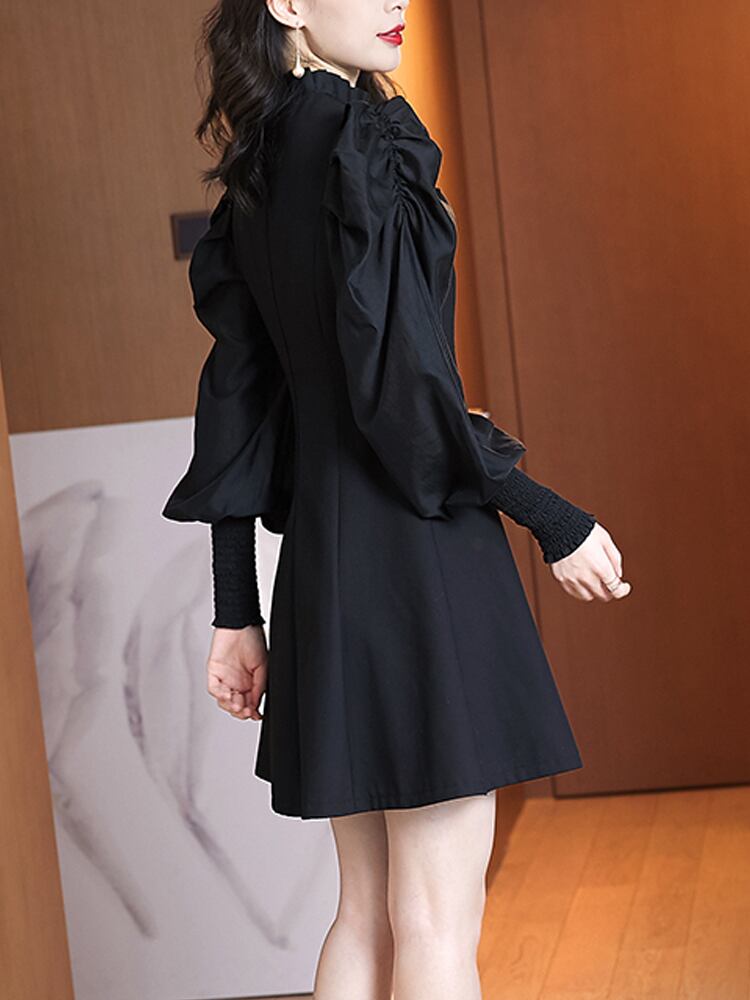 ワンピース Aラインワンピース ミニ丈 長袖 無地 春 秋 冬 細身 Aライン フリル かわいい 大人可愛い きれいめ シンプル 大人 上品 おしゃれ 大人女子 ラブリー キュート ガーリー ハイネック ミニ ボリューム袖 黒 ブラック モノトーン M L XL 2XL 3XL 大きいサイズ 10代 20代 30代 学生 通学 デート お出かけ 女子会 パーティー イベント 着回し 韓国系 ファッション モテ 美脚 脚長 プチプラ 送料無料 | Rena 韓国ファッション レディースアパレル