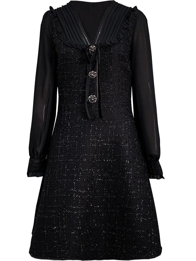 ワンピース Aラインワンピース ミニ丈 長袖 無地 春 秋 冬 細身 Aライン シフォン 透け感 シースルー かわいい 大人可愛い きれいめ 大人 上品 おしゃれ 大人女子 キュート ガーリー モード系 エレガント Vネック ミニ ボリューム袖 黒 ブラック モノトーン M L XL 2XL 3XL 大きいサイズ 10代 20代 30代 40代 学生 通学 デート お出かけ 女子会 パーティー イベント 普段使い 韓国系 オルチャン ファッション コーデ 美脚 脚長 プチプラ 送料無料 | Rena 韓国ファッション レディースアパレル