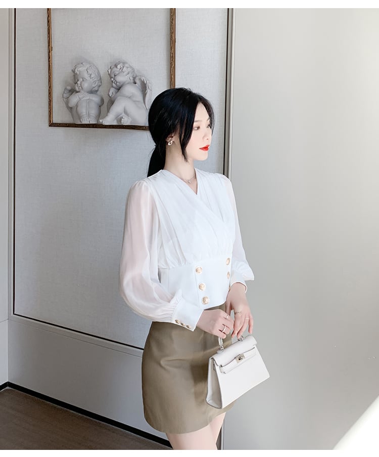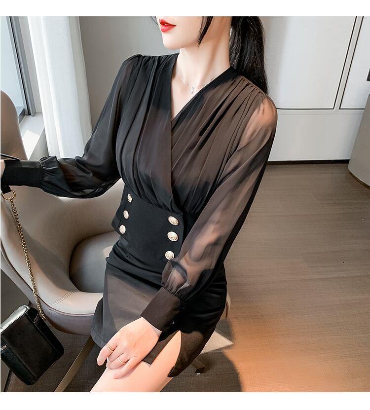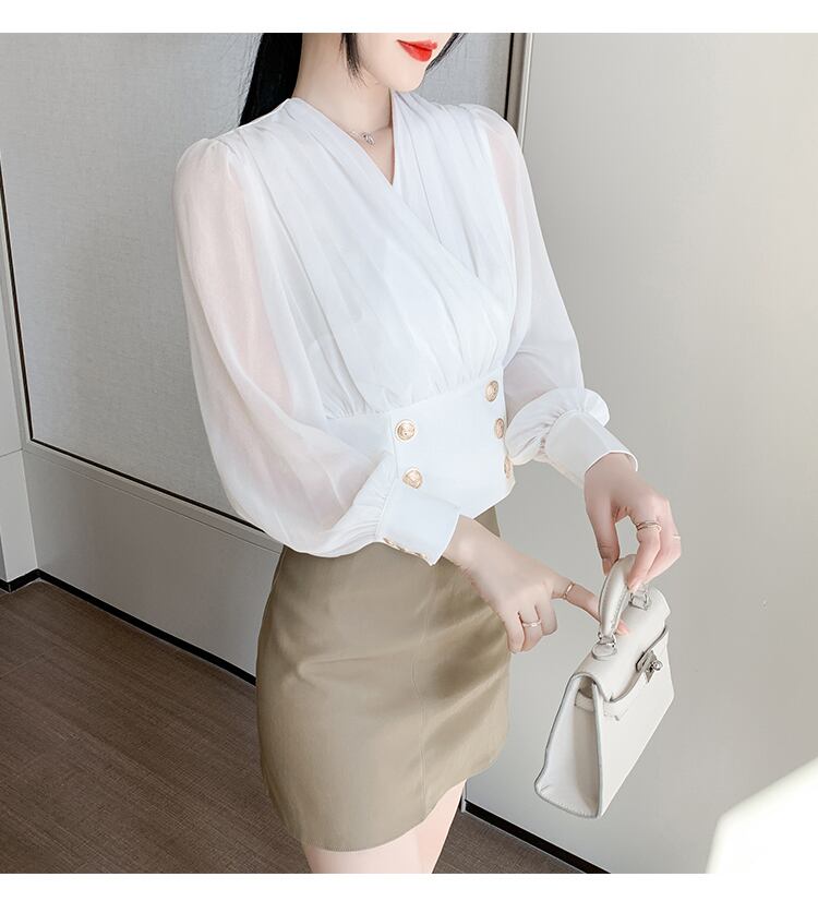 ブラウス カットソー 長袖 無地 春 夏 秋 スリム 細身 シフォン ウエストマーク 透け感 シースルー 大人可愛い きれいめ シンプル カジュアル 大人 上品 おしゃれ かっこいい 大人女子 こなれ感 ラフ クール モード系 主役級 Vネック 白トップス 白 ホワイト 黒 ブラック S M L XL 2XL 大きいサイズ 10代 20代 30代 40代 50代 オフィス ビジネス OL 通勤 学生 通学 デート お出かけ 女子会 着回し 普段使い スタイル プチプラ 送料無料 | Rena 韓国ファッション レディースアパレル