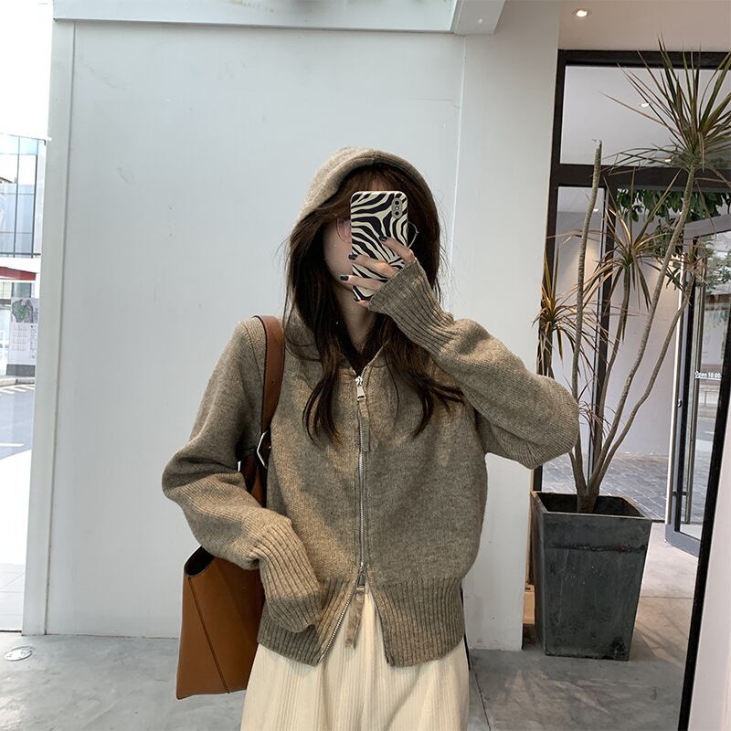 トップス レディース カーディガン 長袖 無地 春 秋 ストレート フード付き ファスナー かわいい 大人可愛い きれいめ シンプル カジュアル 大人 上品 おしゃれ お洒落 かっこいい レトロ 大人可愛い 大人女子 ルーズ とろみ感 Vネック 袖あり 白 ホワイト 灰色 グレー S M L XL ゆる 20代 30代 オフィス ビジネス 通学 デート お出かけ 公園デビュー 着回し 普段使い 韓国 韓国系 オルチャン ファッション コーデ モテ 送料無料 トレンド 流行 インスタ映え | Rena 韓国ファッション レディースアパレル