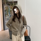 肌寒い季節に重宝する、フード付きカーディガンです。