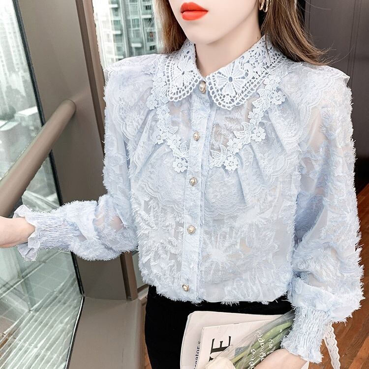 トップス レディース ブラウス 長袖 無地 春 セミフレア スリム ストレート レース かわいい 大人可愛い きれいめ シンプル カジュアル 大人 上品 おしゃれ お洒落 大人可愛い 大人女子 キュート ガーリー エレガント クルーネック 袖あり 白 ホワイト 青 ブルー ベージュ くすみカラー 大人カラー S M L XL 20代 30代 オフィス ビジネス 通勤 学生 デート お出かけ 女子会 休日 パーティー 着回し 普段使い 韓国系 オルチャン コーデ 送料無料 トレンド 流行 インスタ映え | Rena 韓国ファッション レディースアパレル