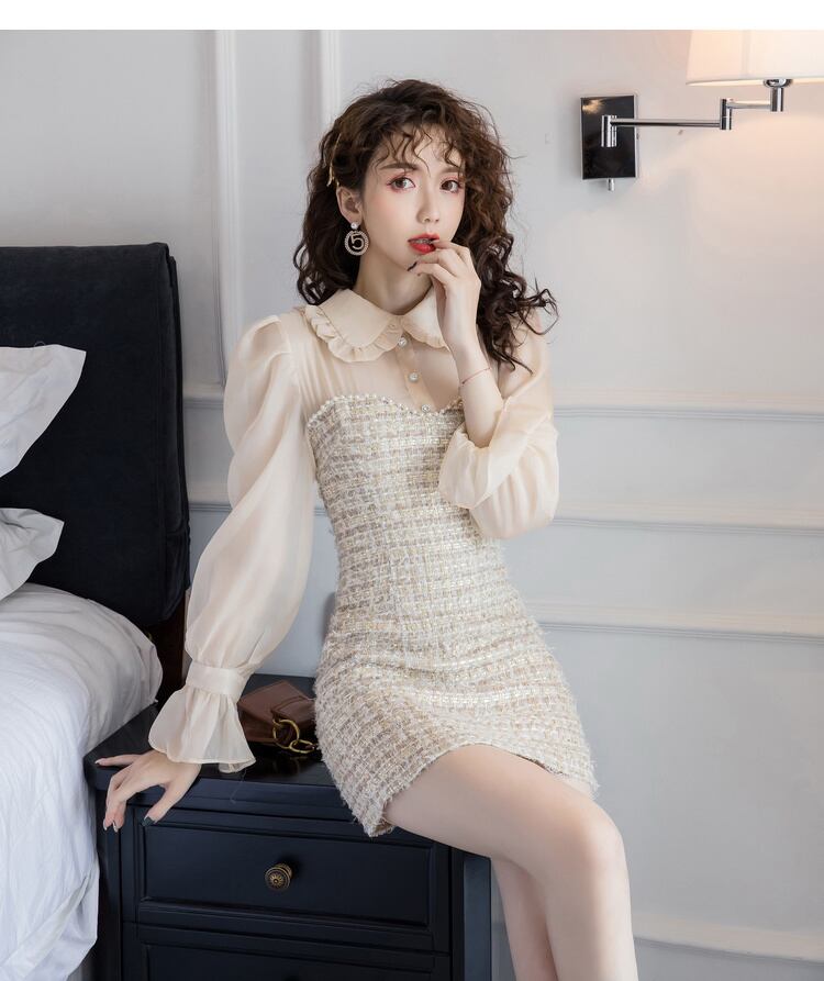 ワンピース タイトワンピース ミニ丈 長袖 春 夏 秋 スリム タイト 細身 切り替えデザイン シフォン かわいい 大人可愛い おしゃれ 大人女子 ラブリー キュート ガーリー 主役級 襟付き ミニ ボリューム袖 S M 10代 20代 30代 OL 通勤 学生 通学 デート お出かけ 女子会 パーティー イベント 普段使い 韓国系 ファッション コーデ スタイル モテ 美脚 脚長 プチプラ 送料無料 | Rena 韓国ファッション レディースアパレル