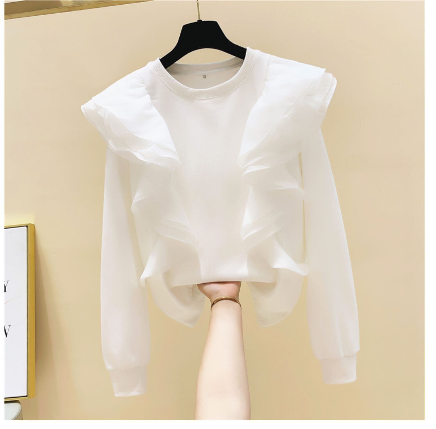 カットソー セーター 長袖 無地 春 秋 冬 フリル かわいい 大人可愛い きれいめ シンプル カジュアル 大人 上品 おしゃれ 大人女子 ラブリー キュート ガーリー 白トップス 白 ホワイト 黒 ブラック 青 ブルー ピンク カラバリ S M L XL 大きいサイズ 10代 20代 30代 40代 50代 OL 通勤 学生 通学 デート お出かけ 公園デビュー 女子会 お泊まり 休日 着回し 普段使い 韓国系 コーデ 楽ちん プチプラ 送料無料 | Rena 韓国ファッション レディースアパレル
