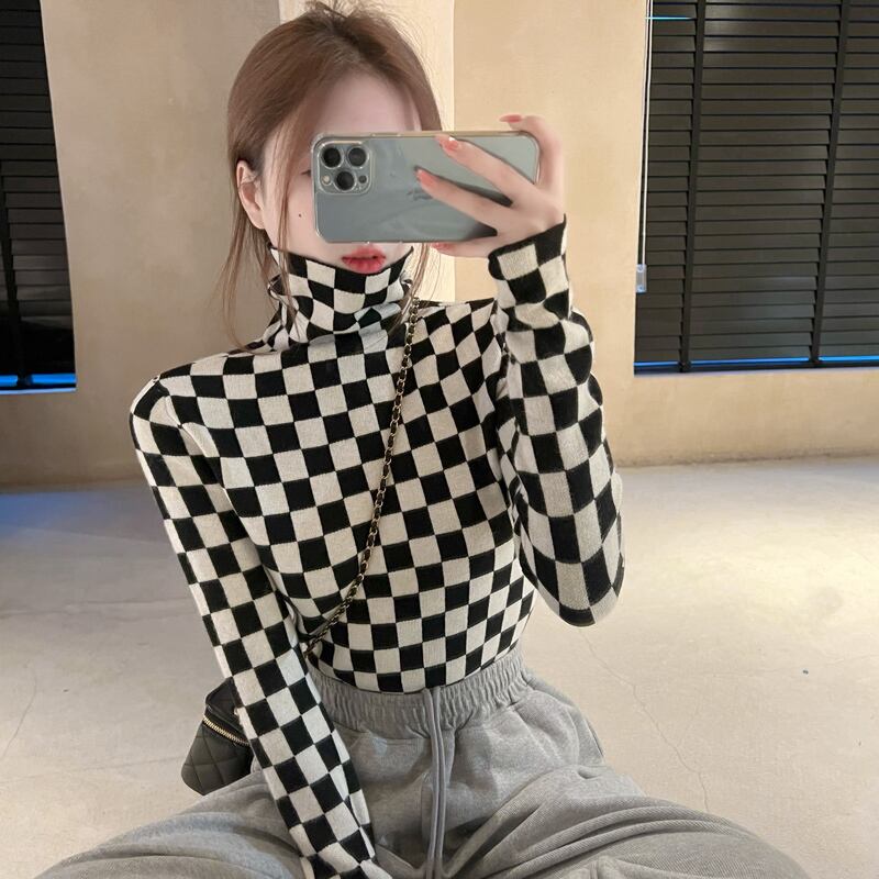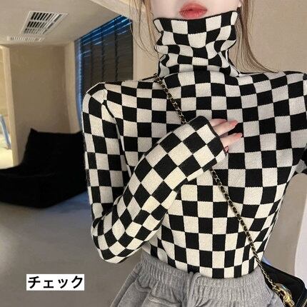 トップス レディース カットソー 長袖 柄 チェック ボーダー セブラ柄 春 秋 スリム タイト 細身 ストレート かわいい 大人可愛い きれいめ シンプル カジュアル 大人 上品 おしゃれ お洒落 かっこいい レトロ 大人可愛い 大人女子 ラフ キュート ハイネック 袖あり 白 ホワイト 黒 ブラック 緑 グリーン S M L 20代 30代 学生 通学 デート お出かけ 公園デビュー 女子会 休日 アウトドア イベント 着回し 普段使い 韓国 韓国系 コーデ 送料無料 トレンド 流行 インスタ映え | Rena 韓国ファッション レディースアパレル