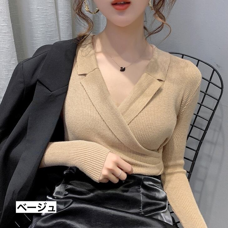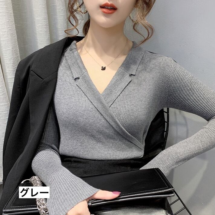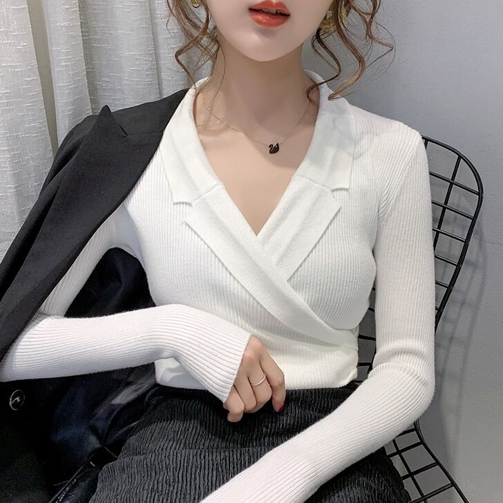 トップス レディース ニット 長袖 無地 春 秋 スリム タイト 細身 ストレート レース かわいい 大人可愛い きれいめ シンプル カジュアル 大人 上品 おしゃれ お洒落 かっこいい レトロ 大人可愛い 大人女子 セクシー エレガント Vネック 袖あり 白 ホワイト 黒 ブラック 茶色 ブラウン ベージュ 大人カラー S M L XL 20代 30代 オフィス デート お出かけ 女子会 休日 着回し 普段使い 韓国 韓国系 オルチャン コーデ モテ 送料無料 トレンド 流行 インスタ映え | Rena 韓国ファッション レディースアパレル