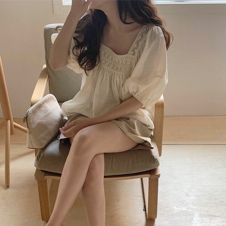 チュニック レディース カットソー 五分袖 無地 春 夏 スリム ストレート かわいい 大人可愛い きれいめ シンプル カジュアル 大人 上品 おしゃれ レトロ アジアン エスニック 大人可愛い 大人女子 キュート ルーズ 個性的 スクエアネック ショート 袖あり 5分袖 2点セット 白 ホワイト ベージュ くすみカラー S M L XL 2XL ゆったり 20代 30代 デート 女子会 休日 着回し コーデ スタイル 楽ちん 送料無料 トレンド 流行 インスタ映え | Rena 韓国ファッション レディースアパレル