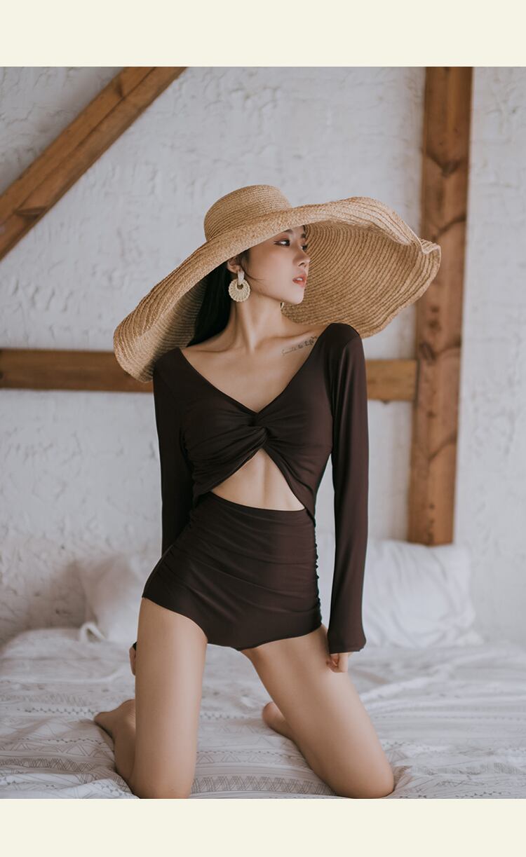 レディース 水着 スイムウェア ワンピース水着 ワンピース パッド付き 二の腕カバー 長袖 ウエストマーク 日焼け防止 紫外線対策 かわいい 大人可愛い きれいめ セクシー シンプル カジュアル 大人 大人っぽい おしゃれ 主役級 クール スタイリッシュ モダン M L XL 2XL 大きいサイズ 黒 ブラック 茶色 ブラウン 無地 10代 20代 30代 40代 50代 レディース 夏 海 ビーチ プール リゾート 旅行 体系カバー 二の腕カバー 美スタイル スタイル 送料無料 | Rena 韓国ファッション レディースアパレル