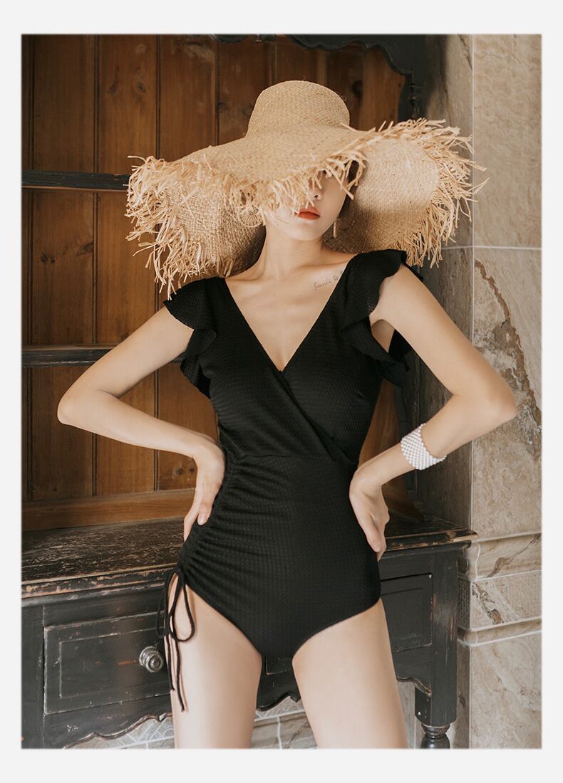 レディース 水着 スイムウェア ワンピース水着 ワンピース パッド付き 二の腕カバー ローリング リボン フリル 胸元 谷間 谷間魅せ かわいい 大人可愛い きれいめ セクシー シンプル 華やか 大人 お洒落 ガーリー クール スタイリッシュ M L XL 2XL 大きいサイズ 黒 ブラック 無地 10代 20代 30代 40代 夏 海 ビーチ プール リゾート 旅行 美脚 脚長 スタイルアップ ファッション 定番 送料無料 | Rena 韓国ファッション レディースアパレル