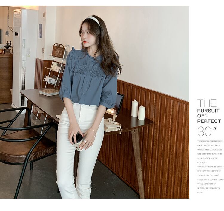 シャツ ブラウス 長袖 無地 春 秋 冬 フリル かわいい 大人可愛い きれいめ シンプル カジュアル 大人 上品 おしゃれ 大人女子 こなれ感 キュート ガーリー とろみ感 スタンドカラー S M L XL 2XL 大きいサイズ 10代 20代 30代 40代 50代 OL 通勤 学生 通学 デート お出かけ 女子会 着回し 普段使い 重ね着 韓国系 ファッション コーデ モテ プチプラ 送料無料 | Rena 韓国ファッション レディースアパレル