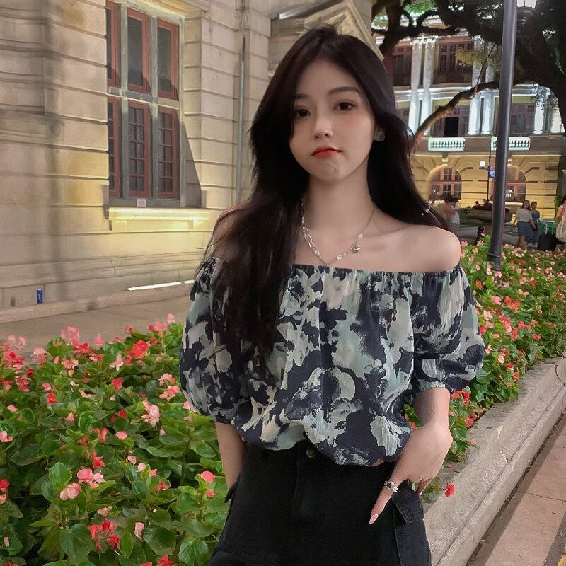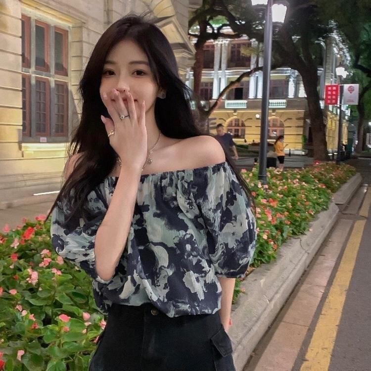 シャツ ブラウス ショート丈 五分袖 柄 春 夏 秋 シフォン かわいい 大人可愛い きれいめ シンプル カジュアル 大人 上品 おしゃれ 大人女子 こなれ感 クール 主役級 存在感 オフショルダー オフショル 5分袖 ボリューム袖 青 ブルー 灰色 グレー S M L XL 大きいサイズ 10代 20代 30代 40代 OL 通勤 学生 通学 デート お出かけ 女子会 パーティー イベント リゾート 旅行 着回し 普段使い 韓国系 ファッション コーデ 送料無料 | Rena 韓国ファッション レディースアパレル